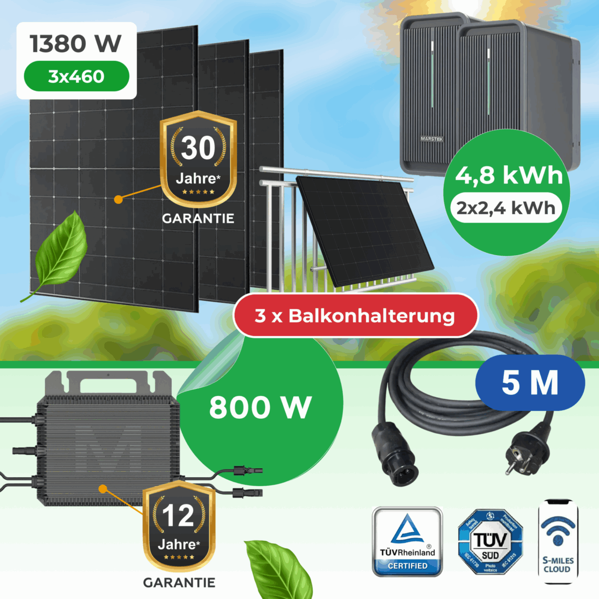 Balkonkraftwerk Komplett-Set 1380W mit Speicher & Balkonhalterung – Ihre smarte Lösung für unabhängigen Solarstrom