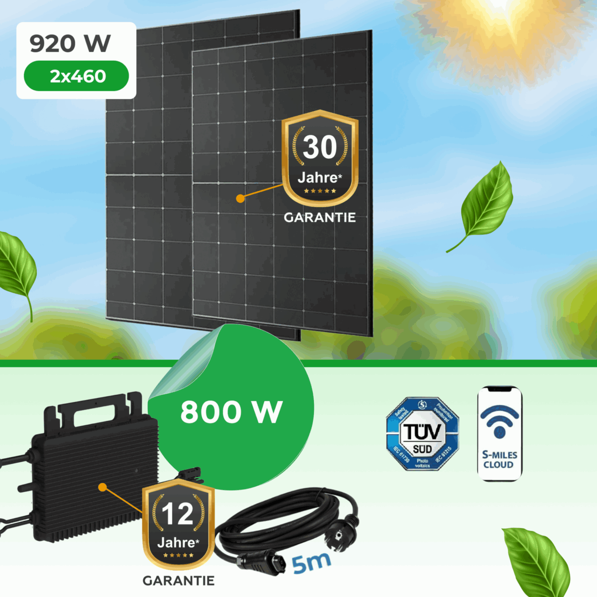 ☀️ 920W Premium Balkonkraftwerk Komplettset mit Hoymiles HMS-800