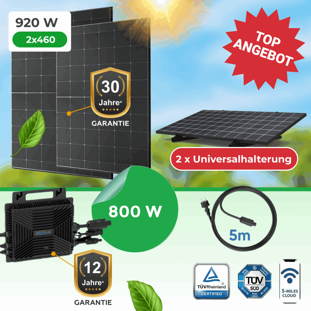 ☀️ 2 × 460W Premium-Solarmodule (920Wp Gesamtleistung)