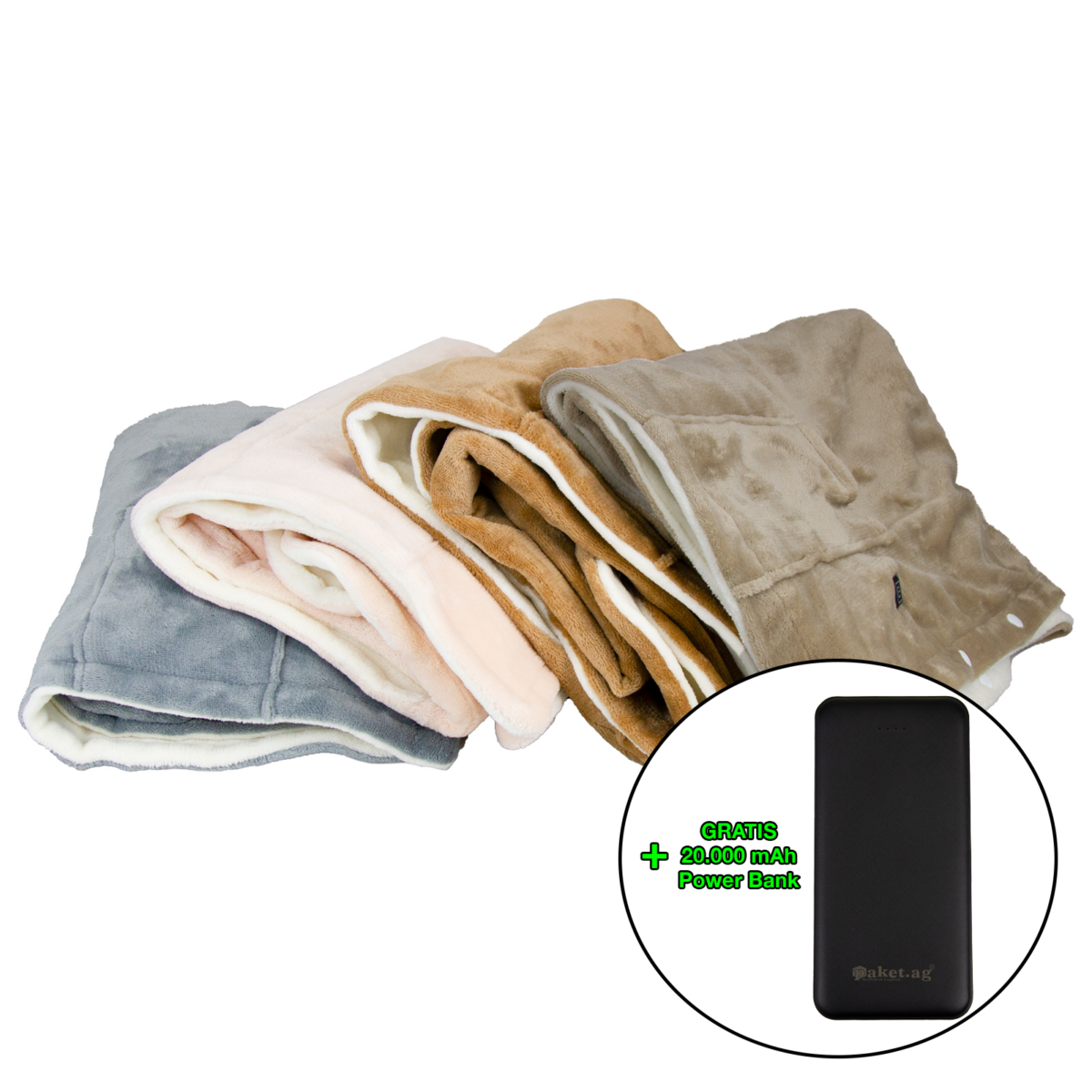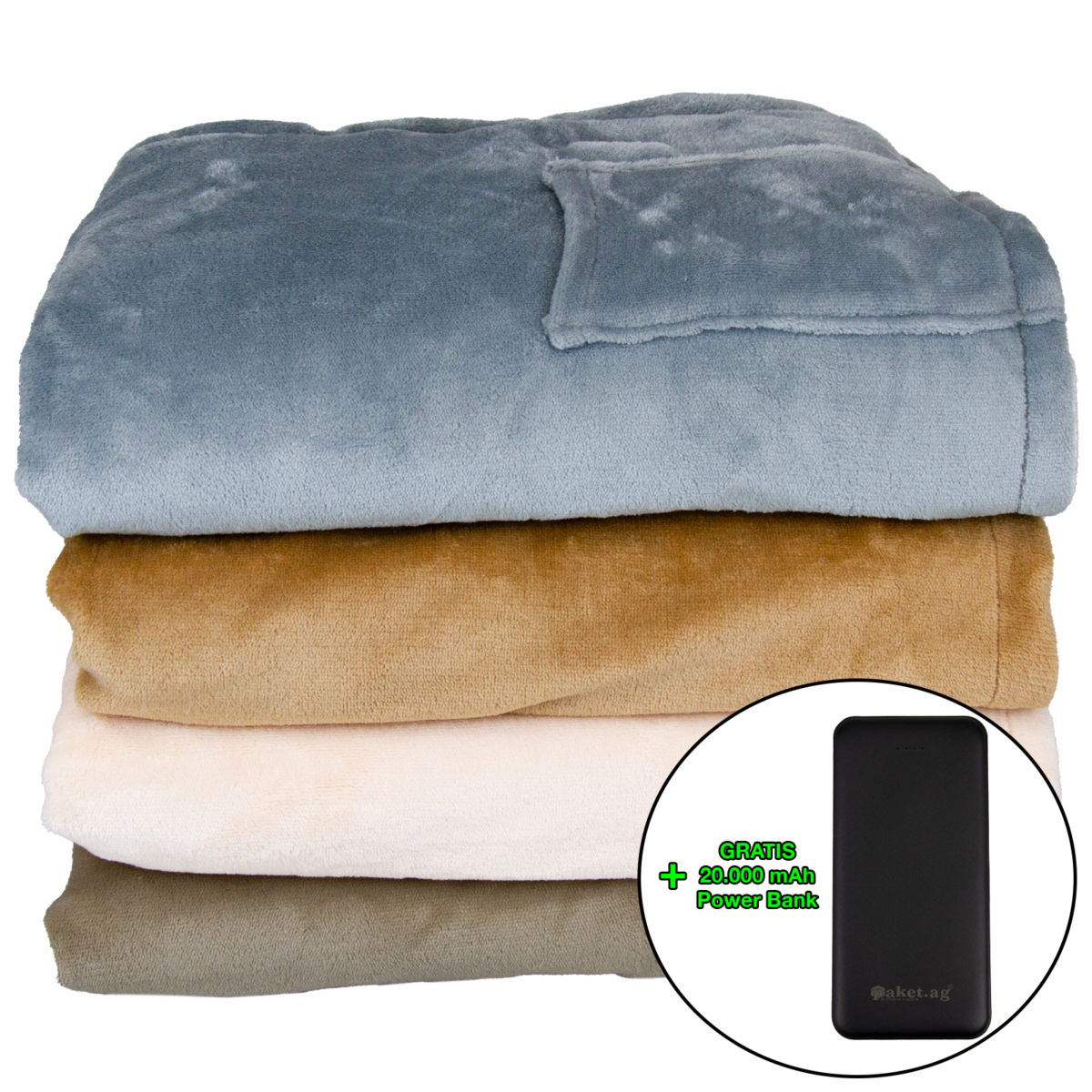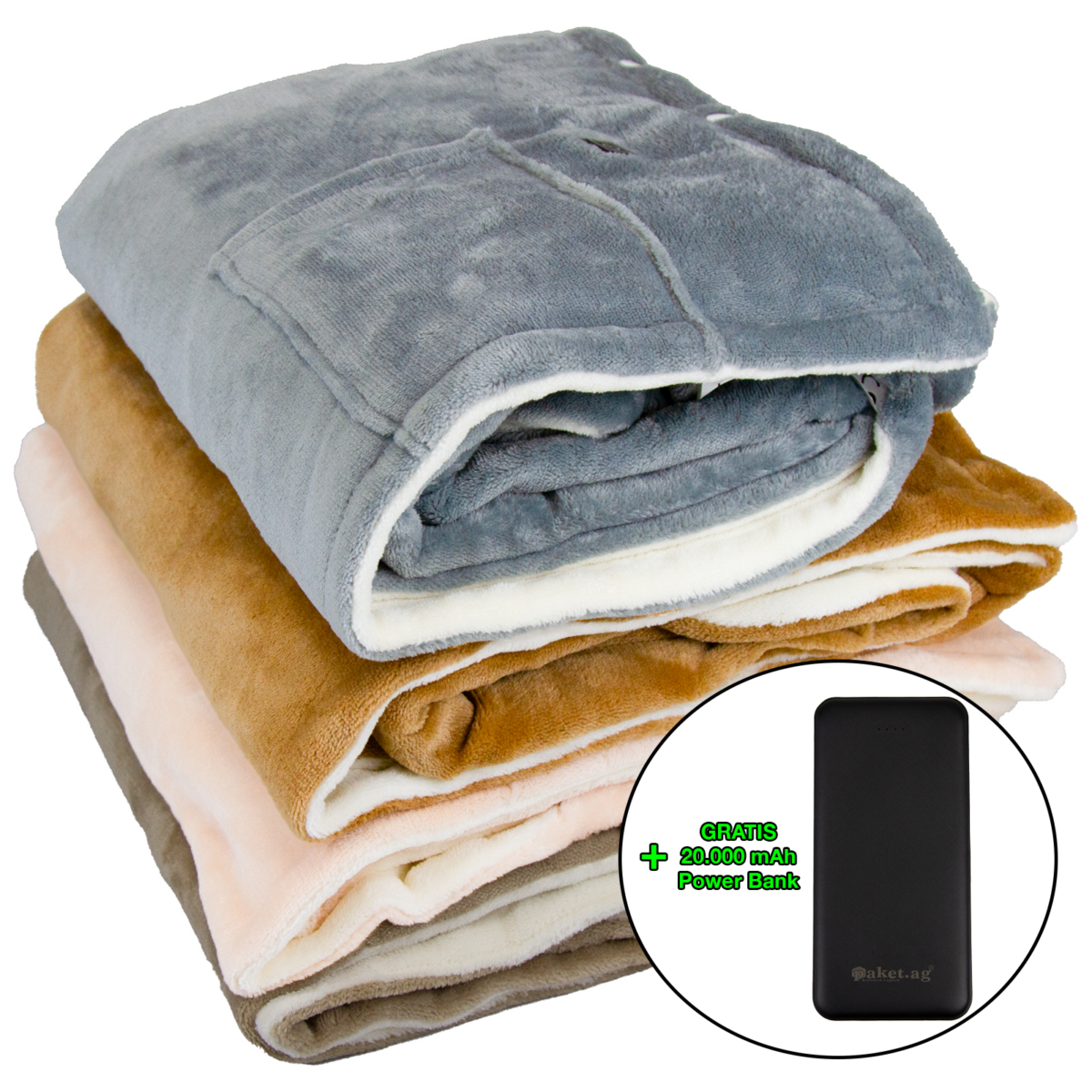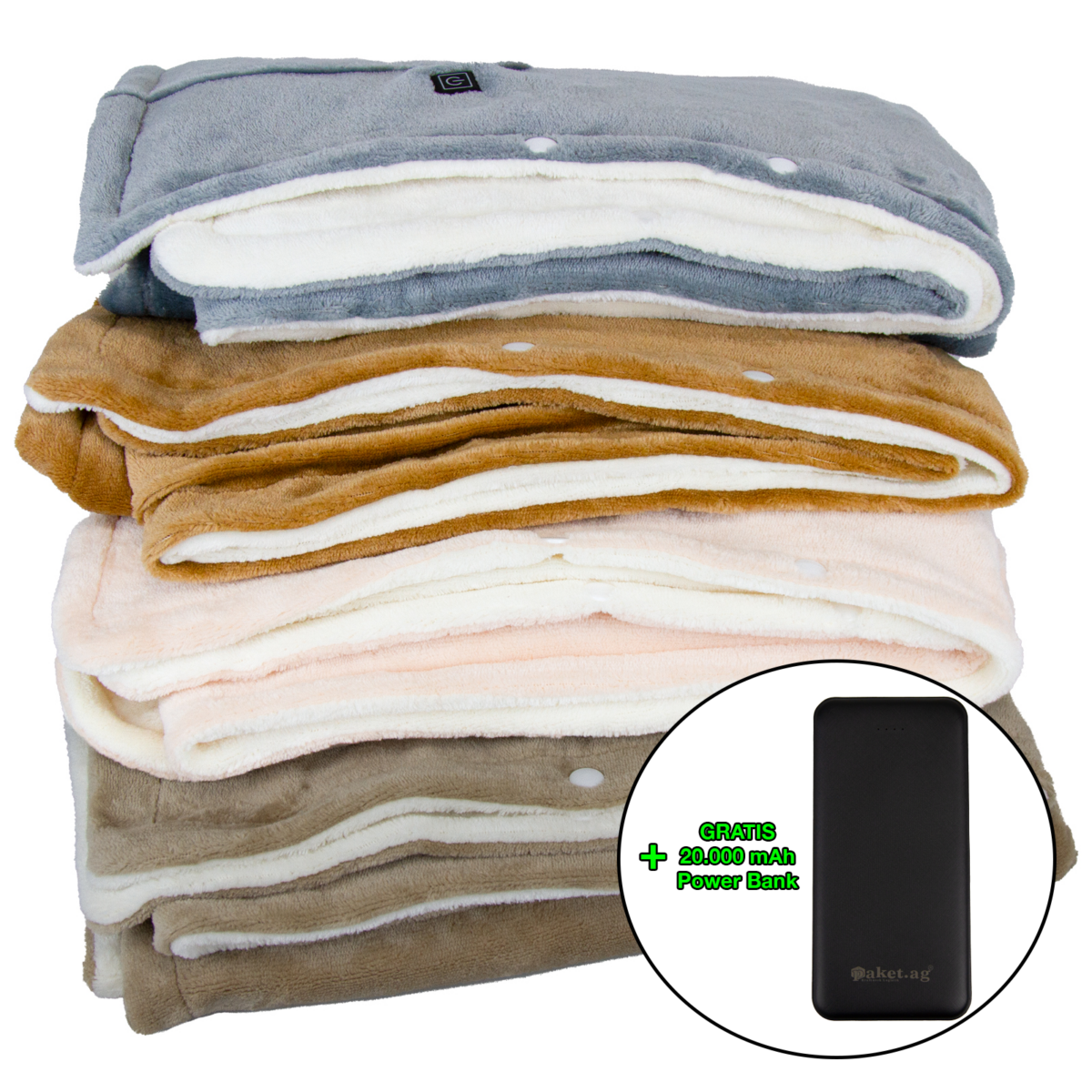 Heizdecke Flanell verschiedene Farben + GRATIS Power Bank