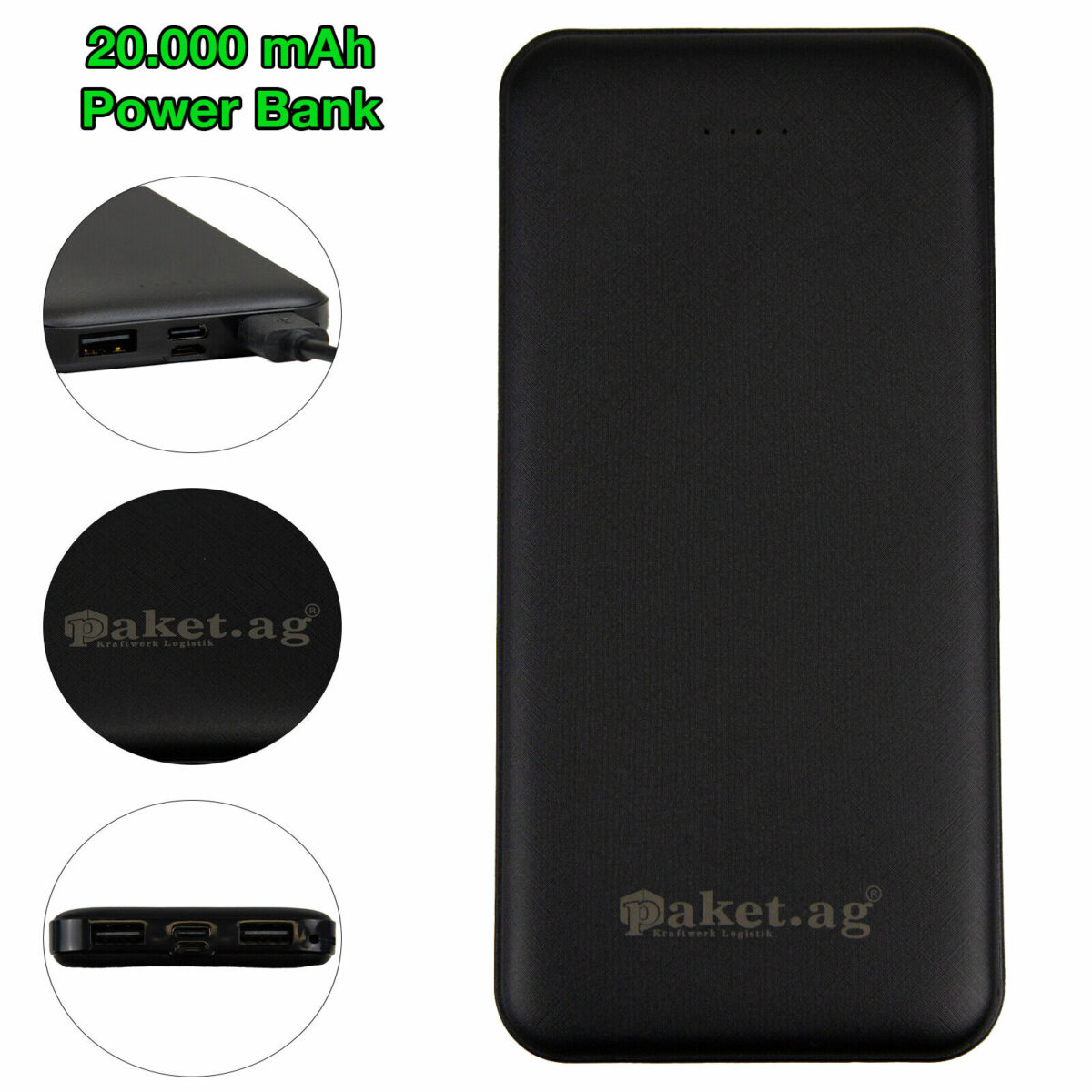 Die 20.000 mAh starke Power Bank “USB Backup Power” ist der ideale Begleiter für unterwegs. Mit einer Kapazität von 20.000 mAh kann sie Ihr Smartphone oder Tablet mehrmals vollständig aufladen. Sie ist kompatibel mit allen gängigen Geräten, darunter iPhone, Samsung, PSP, MP3/MP4, GPS, Bluetooth, Digitalkameras und vieles mehr.